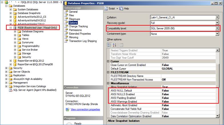 Following screen show is talking about the Updated Database Options during the execution of above PowerShell Script. You can browse this screen by selecting database properties and Options tab where you can notice updated Database Options during PowerShell Execution.